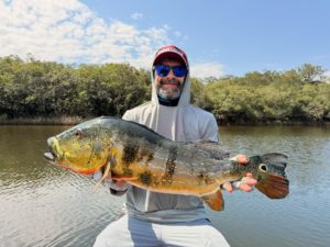 Cette rivière offre une diversité exceptionnelle, passant des berges sauvages, tapissées de bois immergés, aux falaises rocheuses. Les lagunes interconnectées, véritables oasis pour le Peacock Bass, offrent des zones de pêche d’exception où ces prédateurs, véritables seigneurs des lieux, se tiennent fièrement en sentinelles aux points stratégiques de la rivière. Il est également possible de pratiquer une pêche multi-espèces avec du matériel léger, car les eaux du Río Tuparro regorgent de petits prédateurs difficiles à énumérer dans leur totalité. Parmi les nombreuses espèces présentes, vous aurez l’opportunité de capturer des Payaras, Yamu, Tararira, Perro, Mataguaro, Cichlidés, Arari, Piau, Bicuda, Sardinata, et bien d’autres encore, pour une expérience de pêche inoubliable.